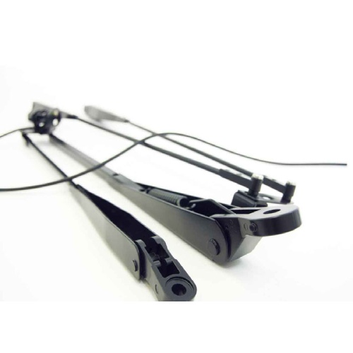 A wiper blade is a device used to remove rain, snow, ice, washer fluid, water, and/or debris from a vehicle's front window so the vehicle's operator can better see what's ahead of them. A wiper more often than not consists of a metal arm; one end pivots, the other end has a long rubber blade attached to it. The arm is thrusted by a motor, often an electric motor, although pneumatic power is also used for some vehicles.